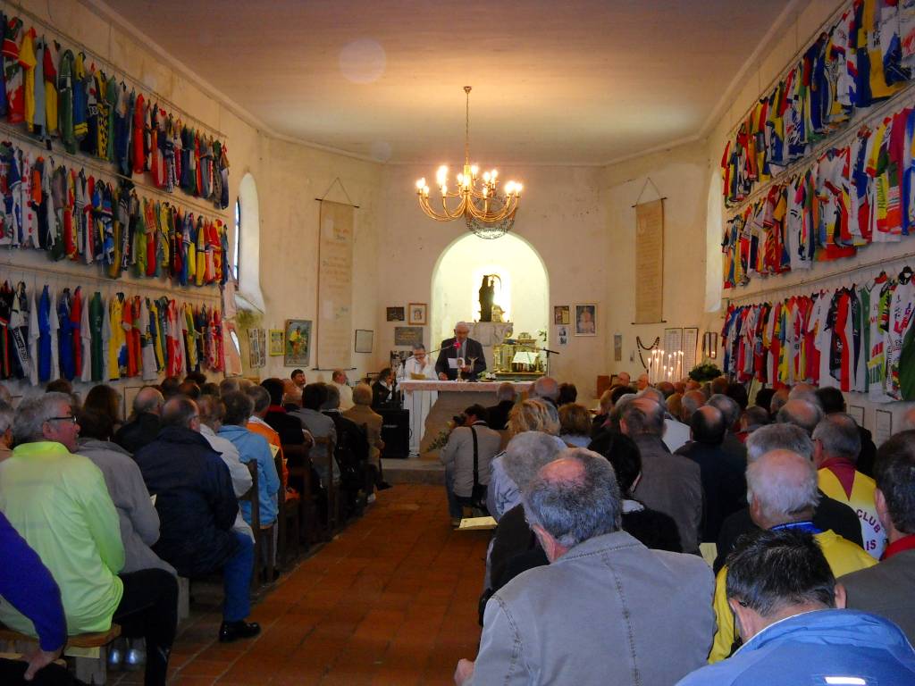 * A la chapelle, cependant, on a ressenti une sorte de saturation. Trop de maillots, trop de vieux vélos et de photos… Est-ce encore une chapelle ? a-t-on fini par se demander. Alors cet hiver a été décroché le maillot d’un tricheur (celui de L. Amstrong), il a bien fallu. Dans les «intentions de prières» a été proposé un pardon pour toutes les tricheries du monde … en pensant d'abord à celles du sport cycliste, peut-être.