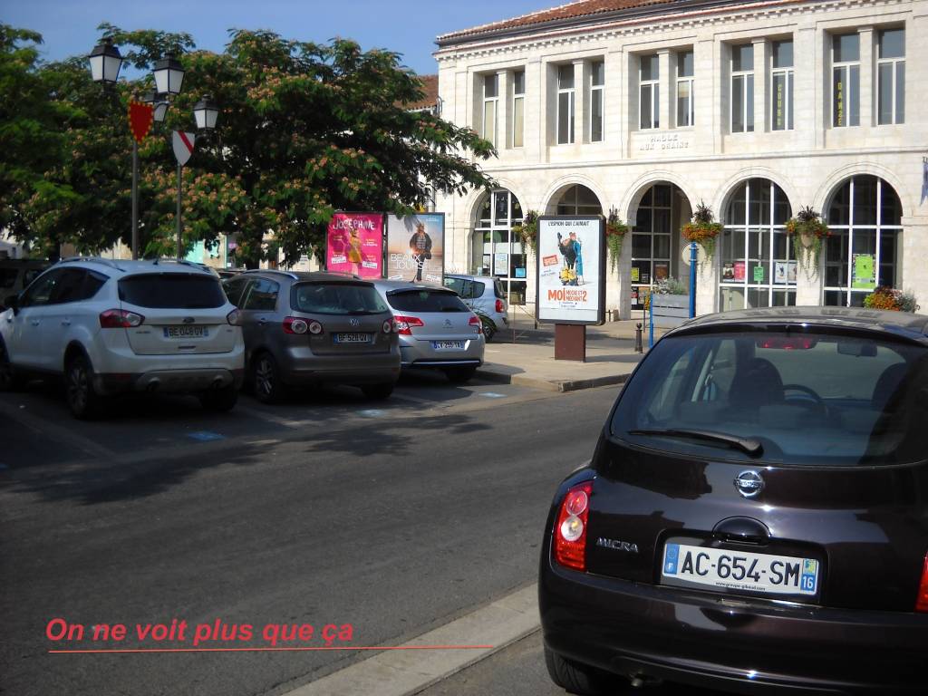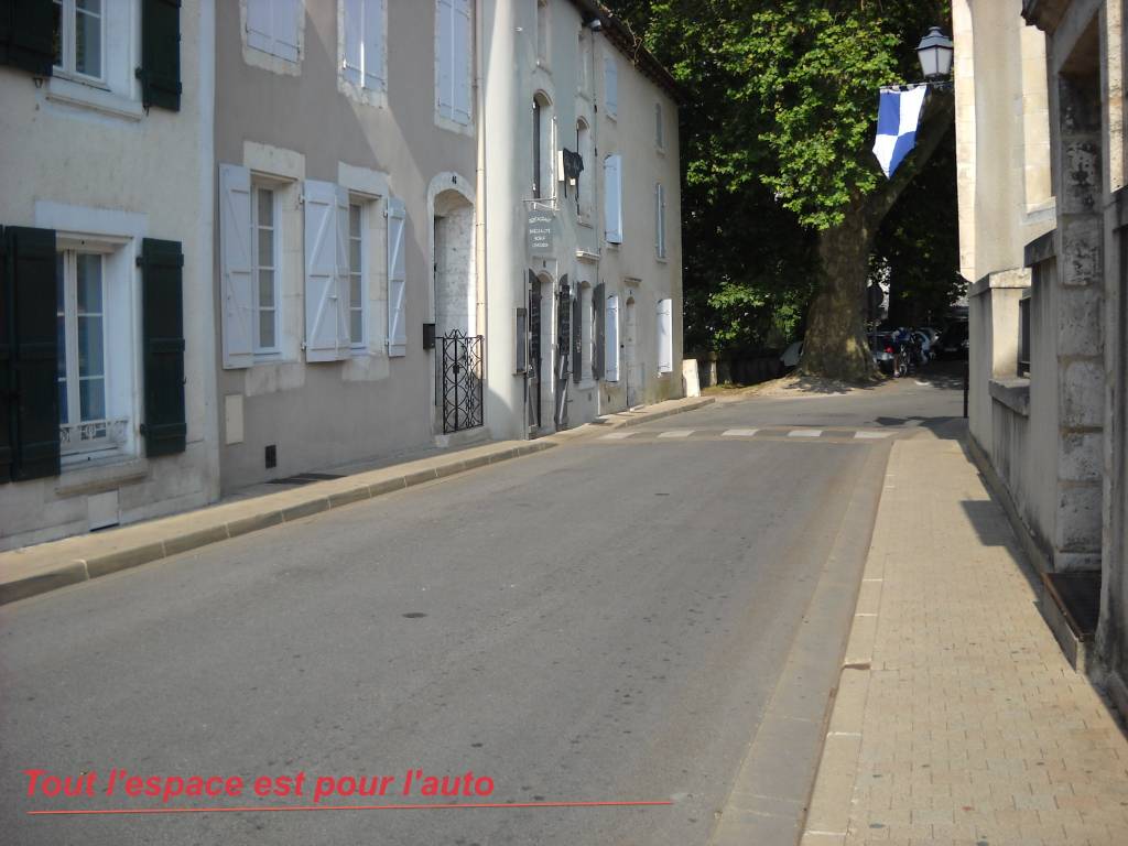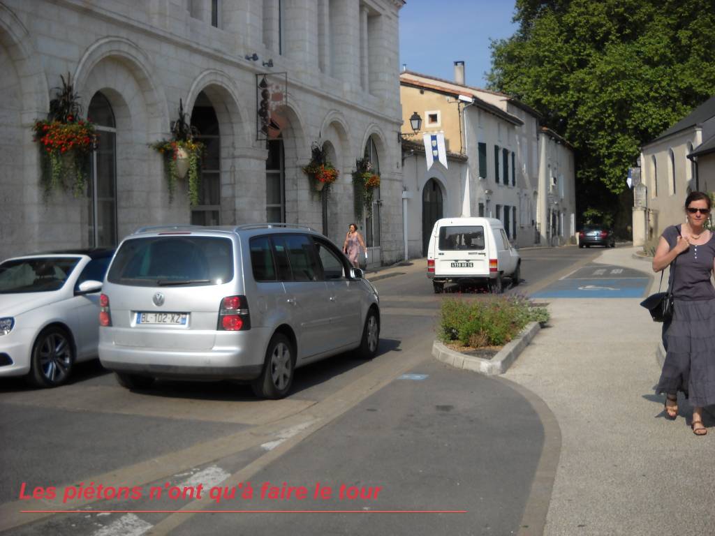 Dernier souvenir de cet été, un contre-exemple spectaculaire à La Rochefoucauld, en Charente, une ville touristique qui se met à plat-ventre devant les autos.