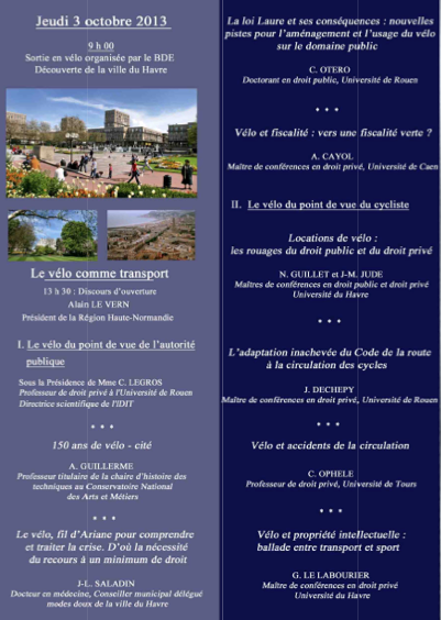 3 octobre, Université du Havre : colloque Le vélo et le droit.