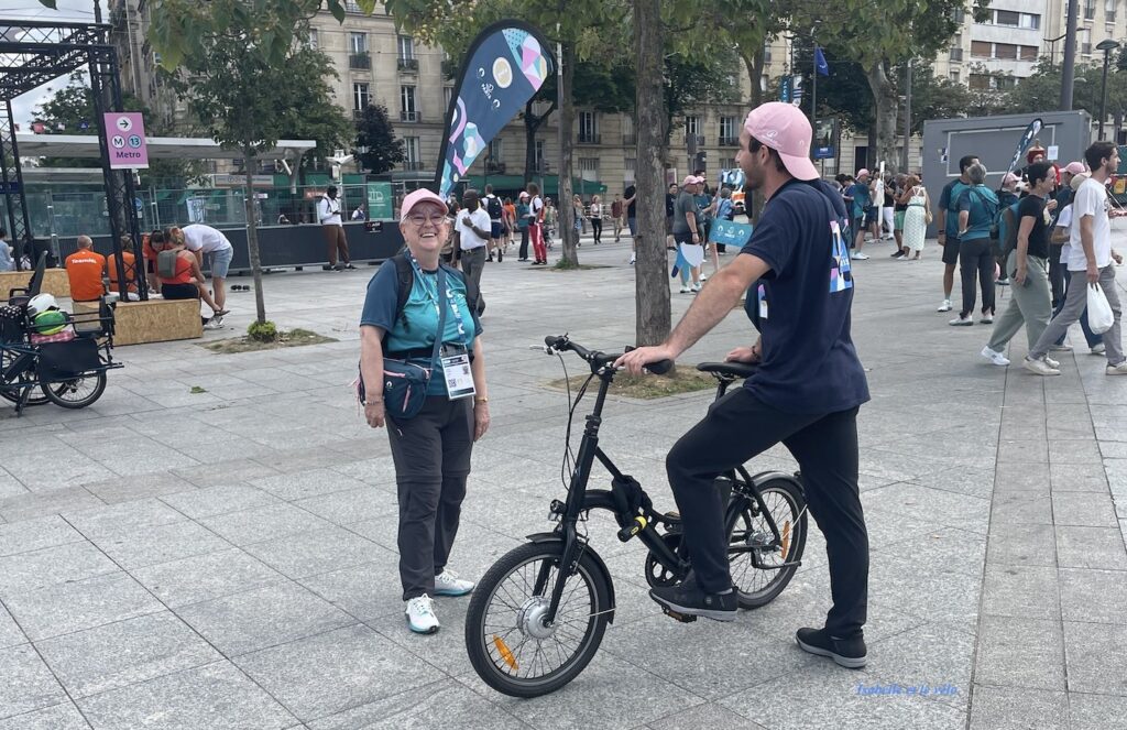 Il règne sur Paris une drôle d’atmosphère, à la fois joyeuse et calme, un peu comme des bulles de champagne. Tout le monde sourit, les voitures sont supplantées par les cyclistes, la chaleur elle-même se transforme parfois en bienvenue fraîcheur. Les bannières, les costumes, la beauté de la Ville, tout participe à cette ambiance légère dont on se souviendra longtemps. Cela est largement dû à l’omniprésence des bénévoles et à leurs couleurs à la fois modernes, apaisantes, et joyeuses.