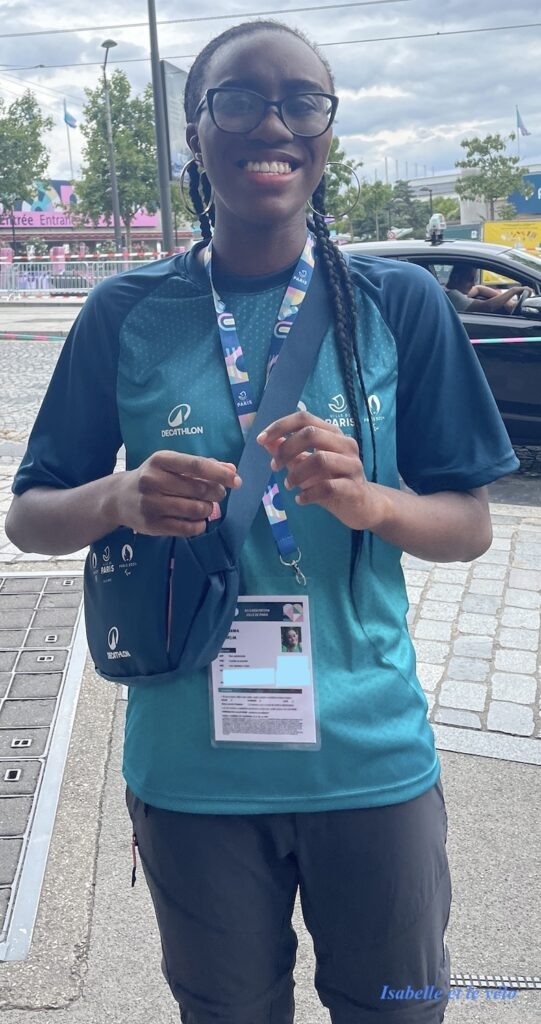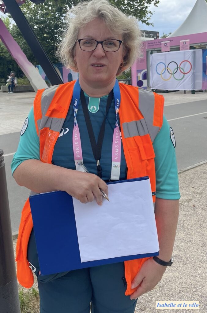 Florence, enfin, est venue dans le cadre de son entreprise, qui est sponsor et envoie 1012 collaborateurs aux Jeux Olympiques, et autant aux Jeux Paralympiques, ce qui fait un joli total de 2024 bénévoles, qui souvent prolongent à leur compte les deux jours offerts. Florence met 3 h pour venir en train + auto du fond de l’Essonne, et autant au retour. D’autres entreprises ont aussi envoyé du personnel, par exemple EDF, et parmi les recalés certains collaborateurs ont pris entièrement sur leur temps pour en être !