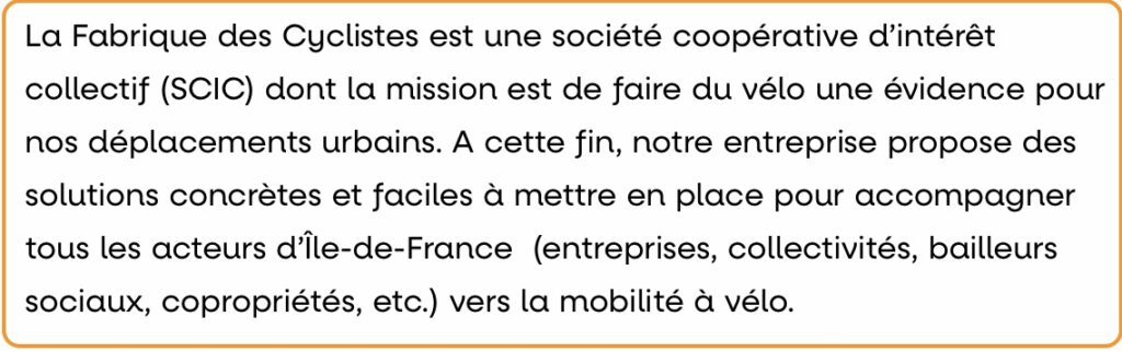 La coopérative francilienne veut souligner explicitement son rôle dans la transformation de la société et son engagement sur l’ensemble des besoins des cyclistes. Elle relève de l’économie « sociale et solidaire ».