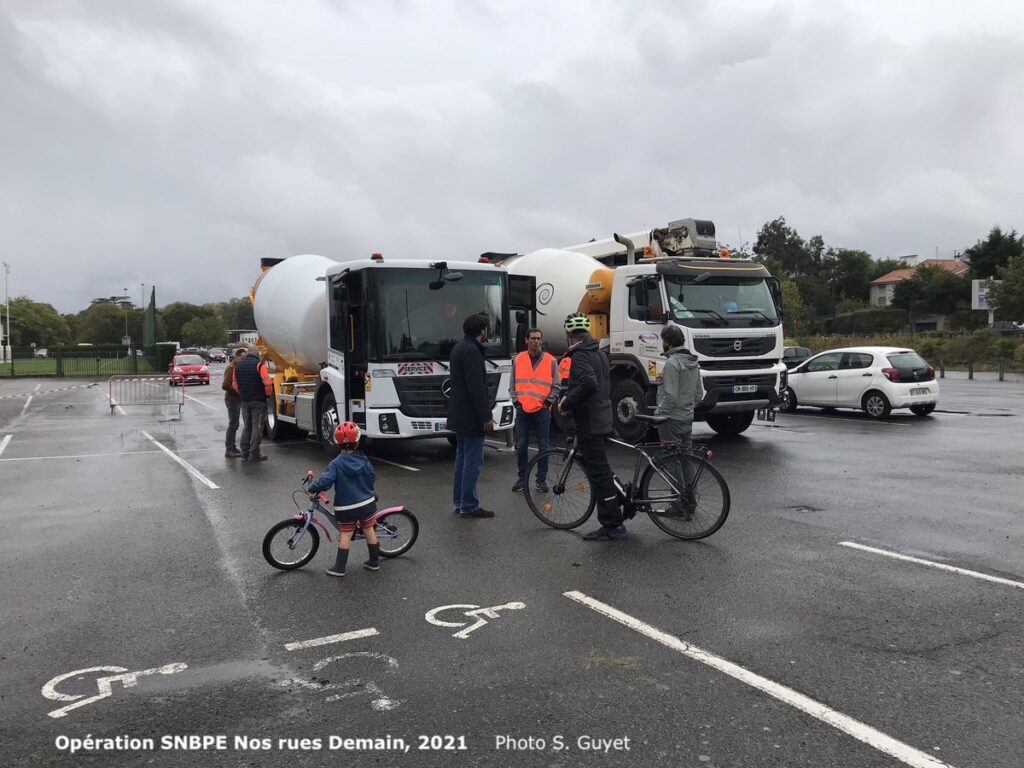 Dans ses propositions pour lutter contre les violences motorisées, la FUB alerte de nouveau sur le sujet des angles morts (point 10). Le rapport d’Emmanuel Barbe (chapitre 6.2 page 72) écarte l’aide à l’équipement des camions existants au motif d’un surcoût trop important du rétrofit par rapport aux camions neufs. Pourtant, le Syndicat National du Béton Prêt à l’Emploi (SNBPE) estimait en 2021 que le coût de 4 caméras 360 degrés serait de 5 000 à 6 000 € pour équiper un camion existant. De plus les camions récents, équipés de cette vision 360, sont conçus avec des cabines basses et vitrées, comme le montraient le SNBPE et l’association Nos Rues Demain en octobre 2021 à Saint Sébastien sur Loire.