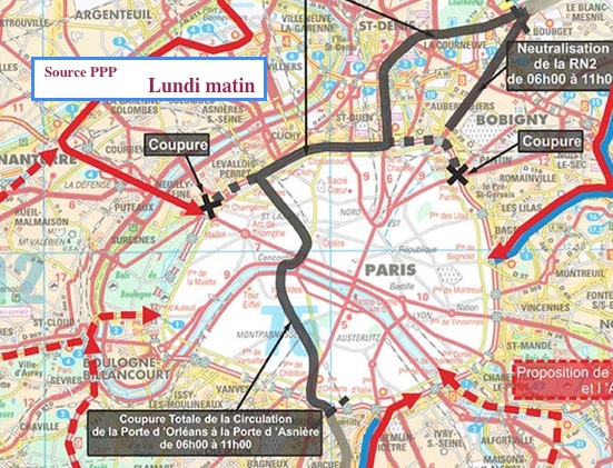 Mais regardez aussi ce qui est prévu pour lundi matin : Paris sera carrément coupé en deux par un "axe réservé" et la RN2 condamnée !!!