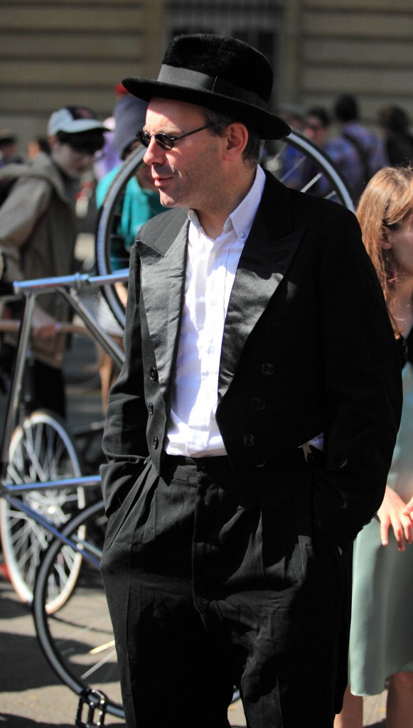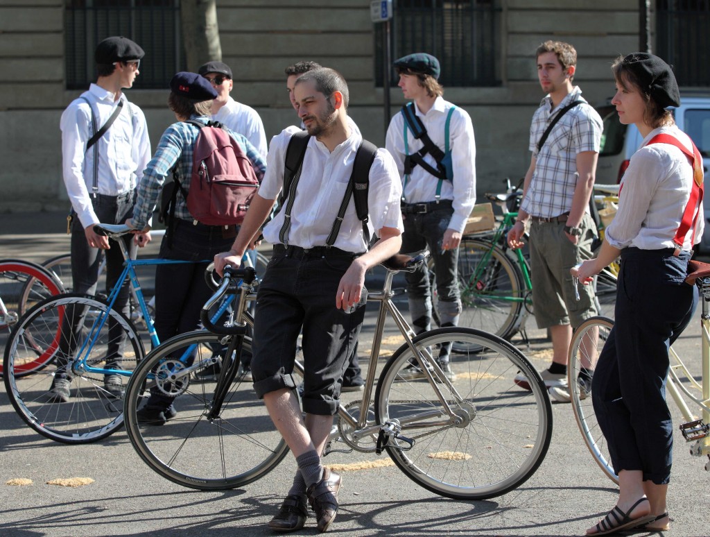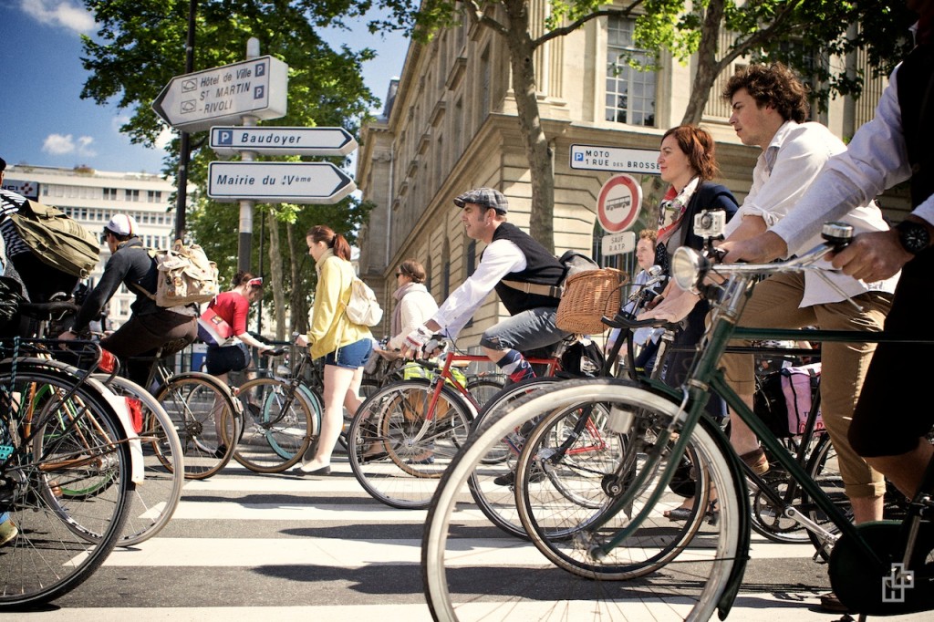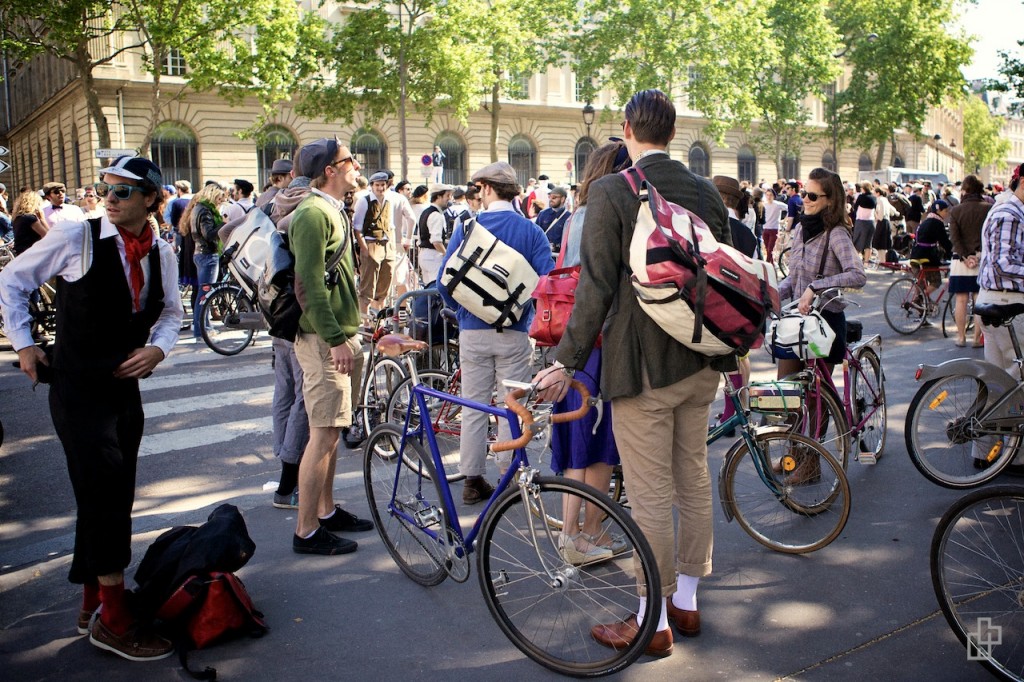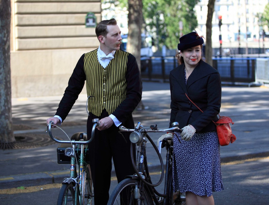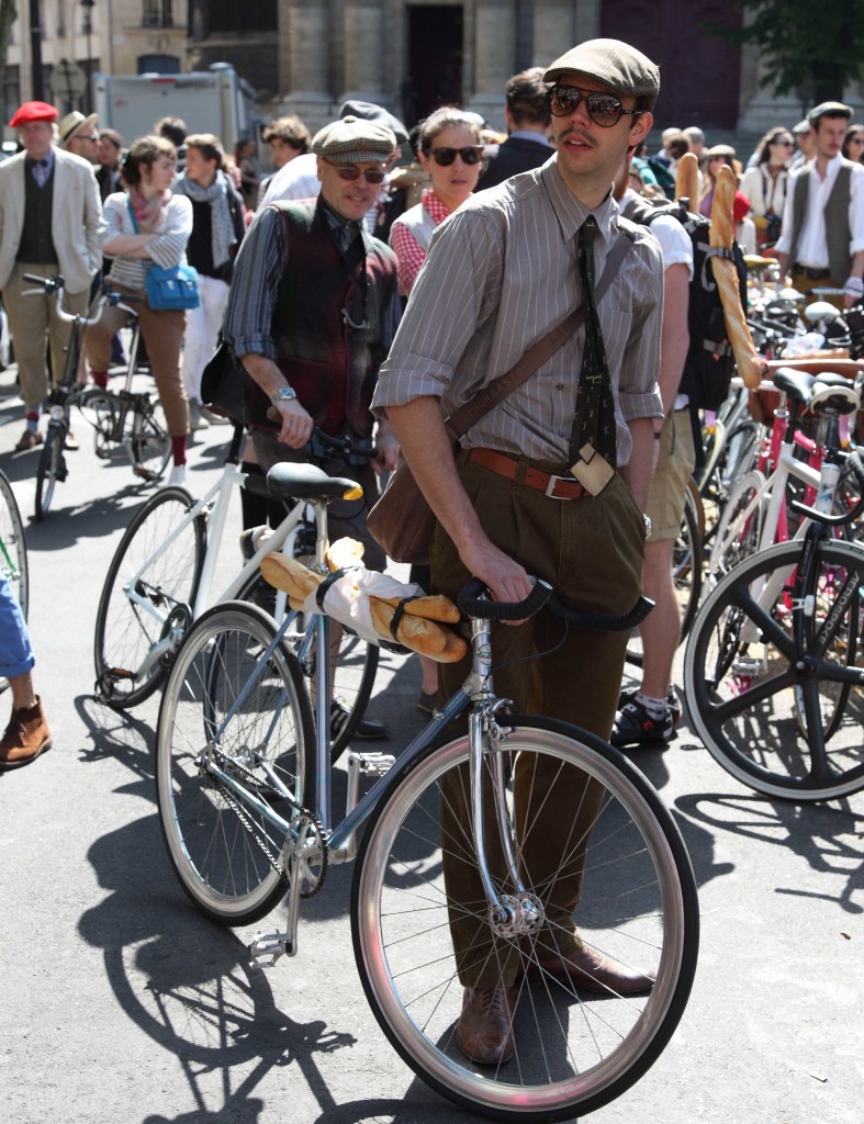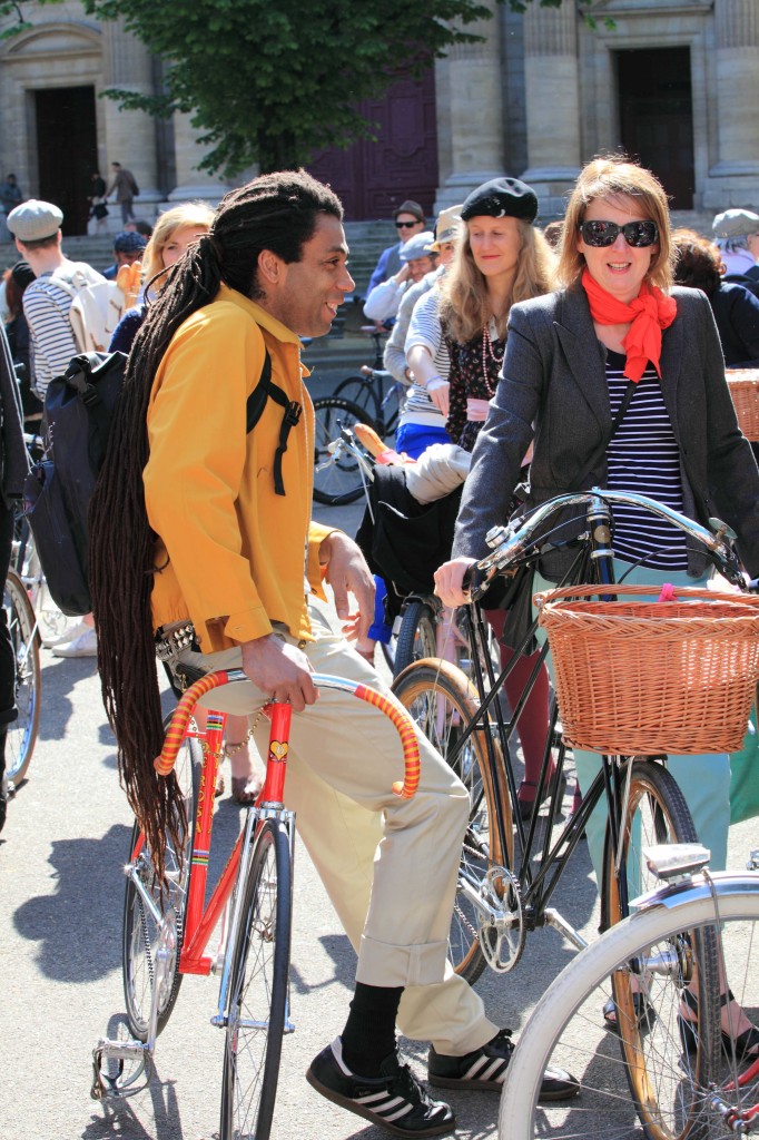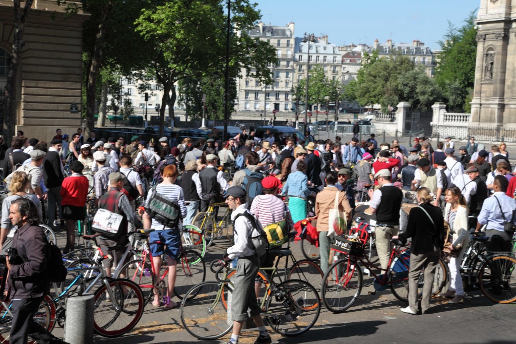Organisée par très peu, pas encadrée par une quelconque maréchaussée, sans inscription ni contrôle, elle se veut rencontre et célébration du vélo, sous l'angle "avant-guerre". Se déguiser et exhiber de beaux vélos, c'est tout un. C'est être Parisien ! Voilà comment furent occupées les principales artères de Paris en ce beau dimanche 13 mai 2012. La moitié du boulevard Saint-Germain rempli, le rond-point des Invalides bloqué, la rue de Rivoli envahie, la place de la Victoire franchie et la photo faite sur les marches de la Bastille ! Cette 4° édition fut un succès joyeux. Des vélos de collectionneur, un grand-bi bien sûr, des vélos mono-vitesses, des vieux vélos, de beaux atours et des sacoches de bel effet ... et aussi des gens en vélib' ou en VTT !!! A Paris on n'est pas élitiste, mais on aime se montrer !