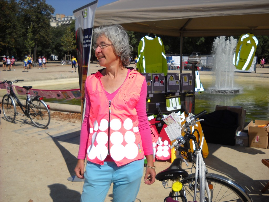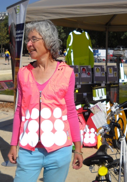 Mais que vois-je sur ces photos : une cyclotte avec gilet fluo mais non casquée ? une vélorutionnaire infiltrée ?
