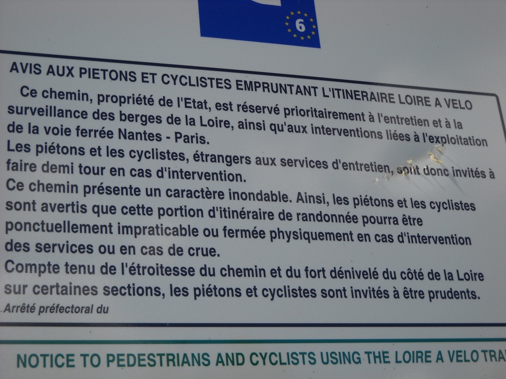 Angers a aménagé deux liaisons avec la gare, et les panneaux, désormais, sont bien là, et tout-à-fait là où ils doivent. A Montsoreau, sable et pierres en bord de Loire remplacent une fameuse côte à 18%, mais à Turquant le même panneau qu’autrefois continue à manquer. A Souzay-Champigny la côte à 11% nous réserve de magnifiques surprises mais l’auteur du guide n’a sans doute pas eu le courage d’y grimper … Je ne vais pas le remplacer, allez voir vous-même ! Ceci dit, le guide (voir en bas), souvent, sauve la mise, notamment par ses plans de ville indispensables. Sans lui, qui peut imaginer qu’il faille passer entre église et tables de bistro pour emprunter un étroit boyaux pour sortir de Saumur ?