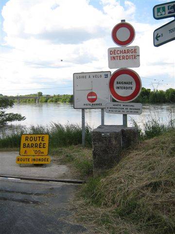 Depuis, lentement, plusieurs emplacements d’inondation ont été signalés sur place (quasiment aucun ne l'était à l'époque), et le site de la Loire à vélo commence même, discrètement (*), à indiquer une partie des interruptions.