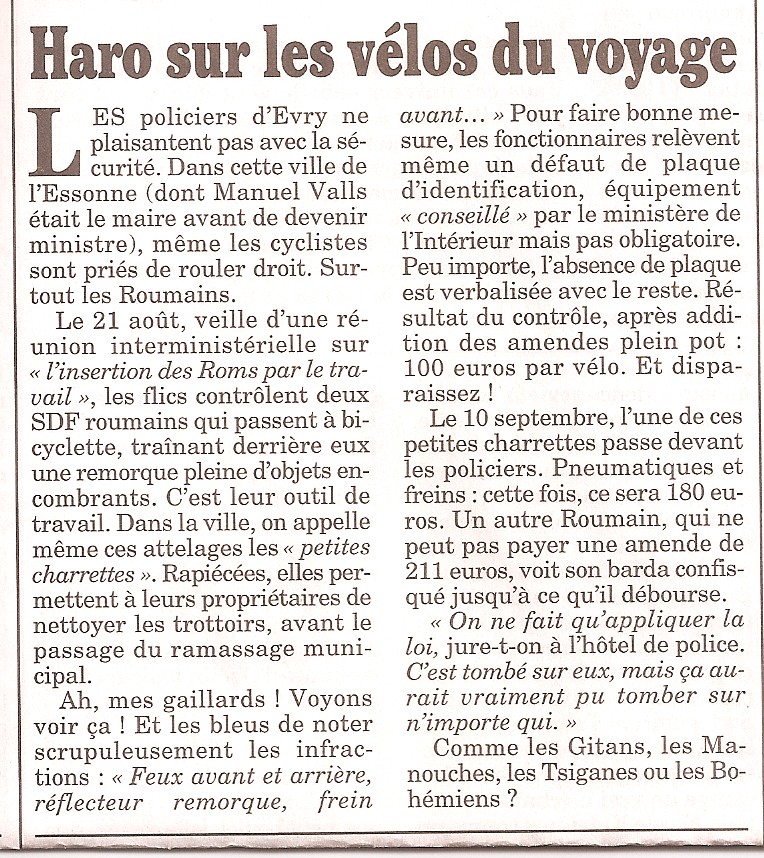 + Haro sur les vélos du voyage, Le Canard enchaîné, octobre. Les vélos ?