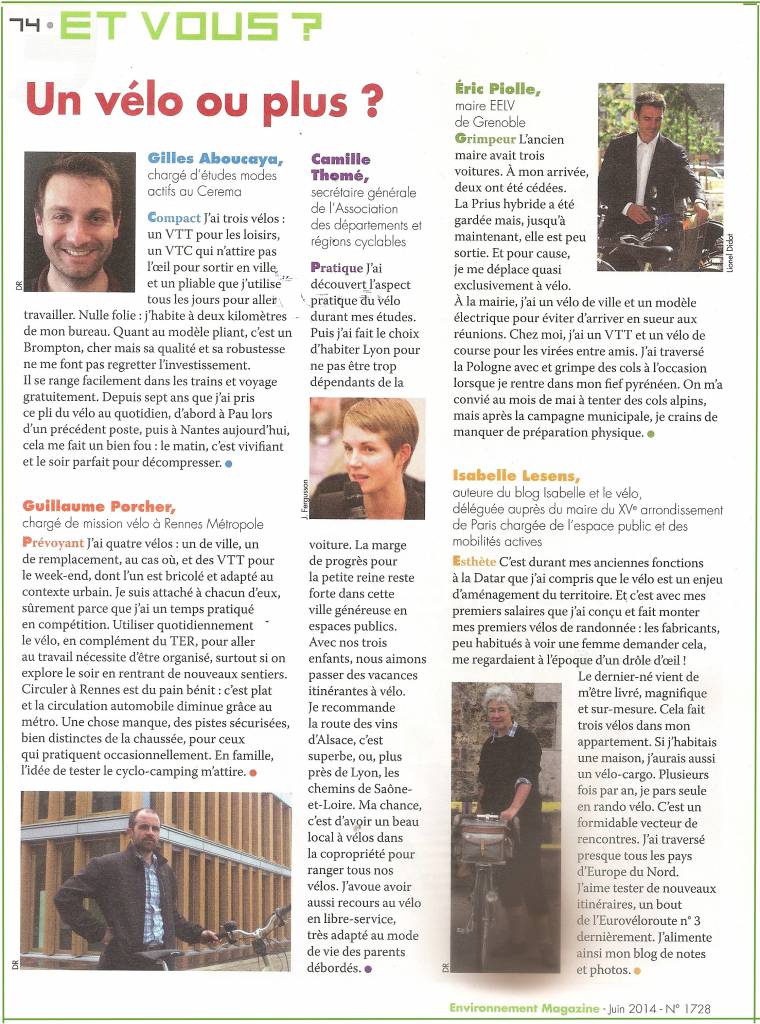 - Elle roule en libre-service, je fais faire mes vélos, à Nantes, Grenoble ou Rennes, ils roulent à vélo, pliant, de course ou même VTT. Environnement magazine, juin 2014. ->