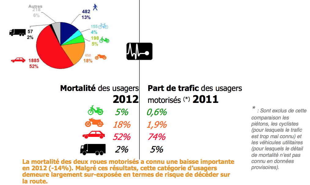 Sur ce point Thomas Jouannot, le monsieur vélo du CERTU, fait une utile mise au point : "La variation entre 2011 et 2012 (+14 cyclistes tués sur l’ensemble du territoire) a une valeur statistique faible au regard de la tendance générale pour les cyclistes, qui est de -30% en 10 ans. (...). Par ailleurs, au cours des dix dernières années, l’usage du vélo s’est fortement développé.