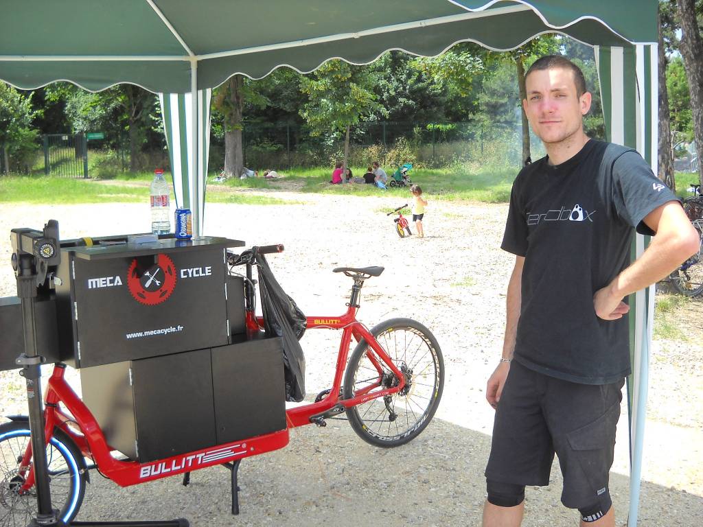 Mecacycle. Créé en avril dernier, par Julien Gonzalès, c'est un atelier mobile de mécanique pour vélos. Sa caisse est une boîte aux trésors, montée sur un bullit, qui se déplace dans tout Paris et petite couronne. Sa clientèle, outre les particuliers, est faite des entreprises qui ont un parc de vélos ainsi que les agences de voyage ou de visites à vélo. Il assure que ses prix sont comparables à ceux des sédentaires.