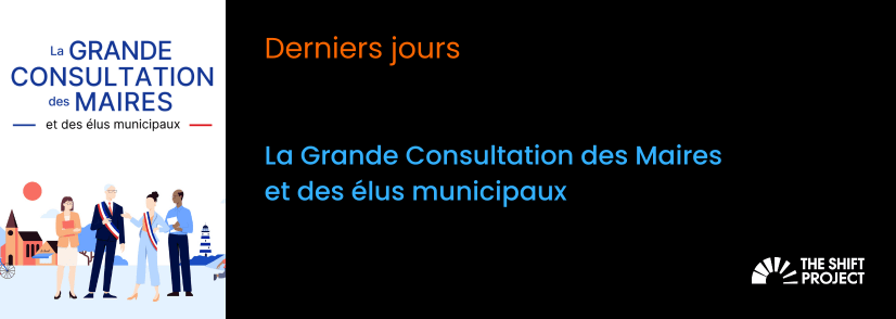 La Grande Consultation des Maires et des élus municipaux lancée mi-octobre par The Shift Project et The Shifters se terminera le 7 janvier. Elle porte notamment sur les risques de pénurie d’eau et sur les questions d’énergie.